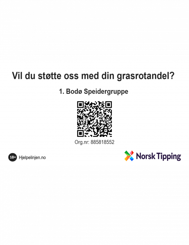 Takk for at du støtter 1. Bodø speidergruppe via Grasrotandelen